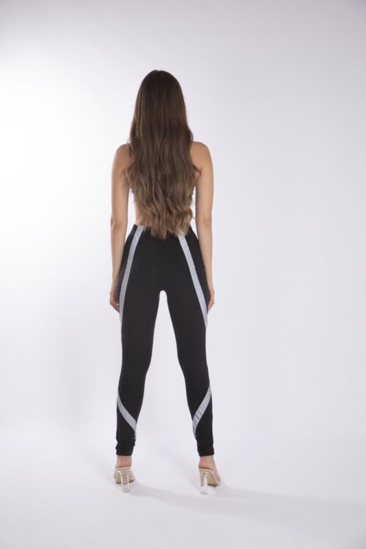 Impresionarás con este leggins ajustado negro de cintura alta con detalles reflectantes.
